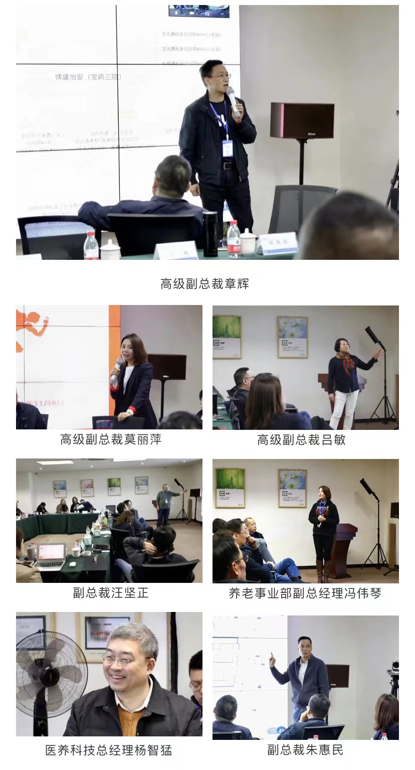 下午,各區(qū)域負責人分享了本部門2021年重要工作。高級副總裁章輝展示了數字康養(yǎng)1.0版本并介紹了西安、常山、衢州等項目的開展情況;高級副總裁莫麗萍分享了臨安賽康、蕭山快康、康久天頤養(yǎng)老院 | 護理院的運營狀況,并詳細介紹了各院特色科室的打造和未來醫(yī)院一體化發(fā)展的設想;高級副總裁呂敏就嘉興和舟山醫(yī)院的現狀進行了分析,并指出更廣泛的業(yè)務拓展和更完善的就醫(yī)流程至關重要,在發(fā)展的同時必須堅持因地制宜;副總裁汪堅正介紹了衢州、成都和石嘴山機構的基本情況,并表示未來要從創(chuàng)新中尋求差異化,不斷提升服務質量;養(yǎng)老事業(yè)部副總經理馮偉琴介紹了運營中和洽談中的養(yǎng)老機構基本情況,強調把控服務質量的重要性;醫(yī)養(yǎng)科技總經理楊智猛介紹了現有業(yè)務的工作進度和現有產品的升級優(yōu)化情況;副總裁朱惠民跟大家分享了集團新辦公樓的設計方案以及養(yǎng)老網論壇等項目的籌備情況,表示要各部門間要保持信息溝通順暢,促進集團的持續(xù)發(fā)展。