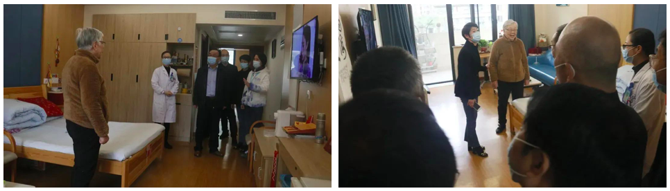 調研組一行實地參觀了康久醫(yī)院各科室、住院部,普陀天頤老人健康自理區(qū)、小單元多功能集中養(yǎng)護區(qū)、智能助浴室、棋牌室、書畫室、禮佛室等功能區(qū)域,詳細了解各項服務。