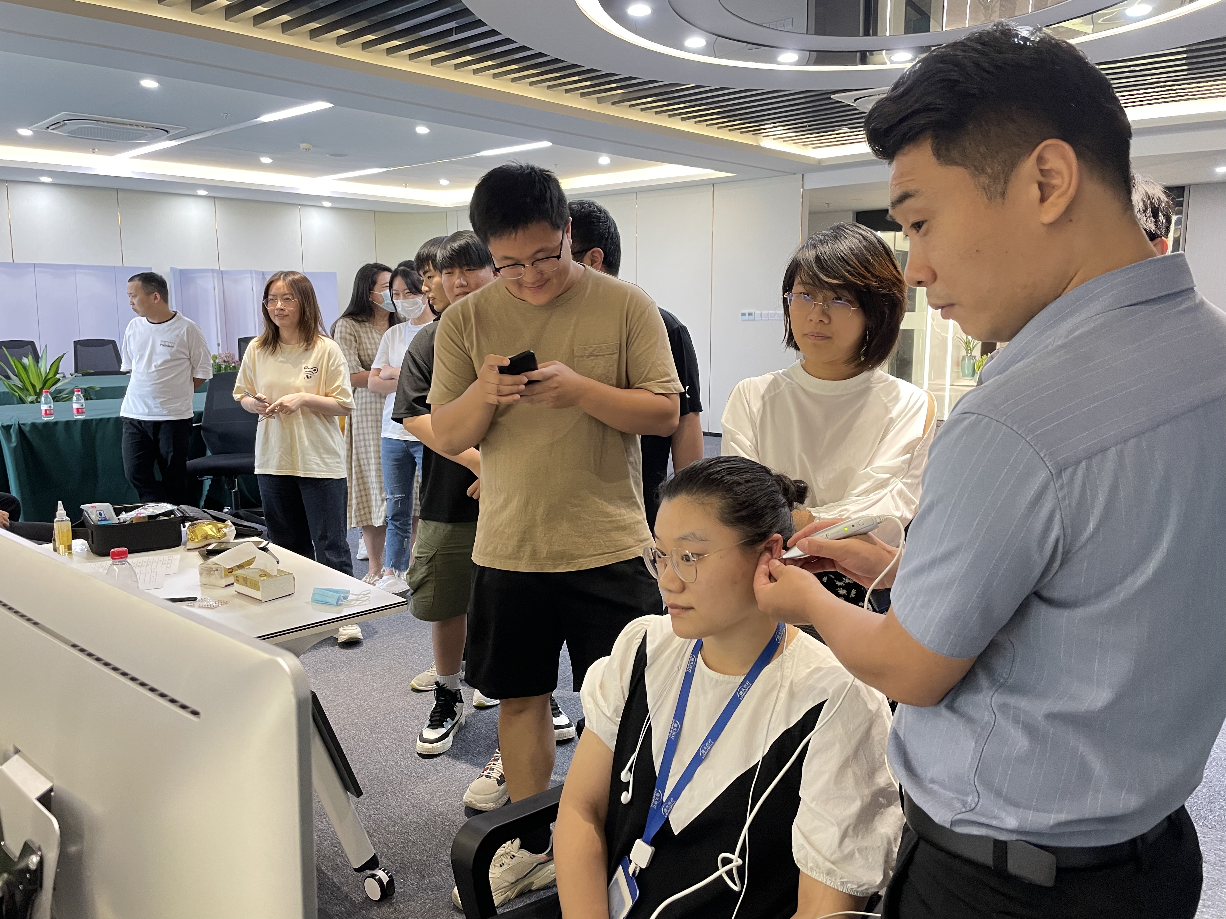 為提高員工的自我保健意識,樹立防病大于治療的健康理念,6月10日,康久集團邀請杭州師范大學教育部移動健康管理系統(tǒng)工程研究中心團隊在總部開展 “耳穴智能檢測”和“耳穴貼壓診療”活動。