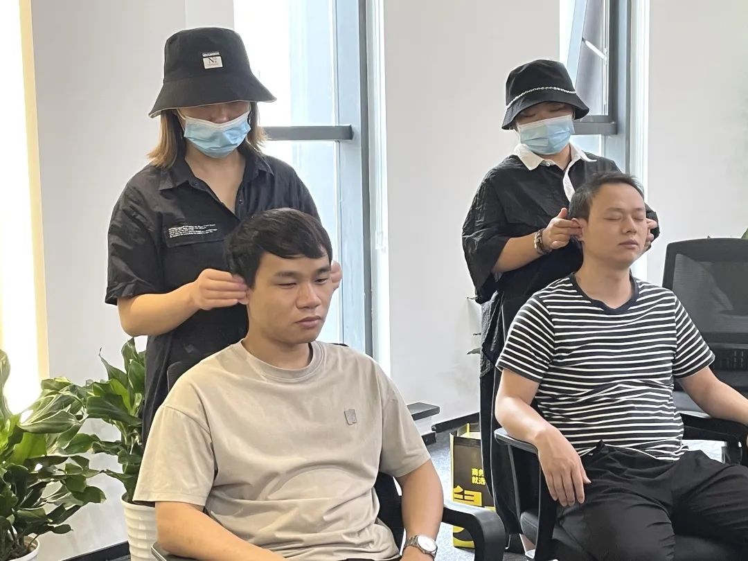 李東飛老師在檢測中發(fā)現(xiàn),不少年輕員工存在睡眠障礙問題。他表示,耳穴貼壓對于改善睡眠障礙,提高睡眠質(zhì)量效果非常顯著。另外,由于伏案工作、長時間低頭看手機等原因,肩頸酸痛也是本次檢測中發(fā)現(xiàn)的最常見的問題之一。對此,李東飛老師建議大家不要長時間低頭,要切實提高我保健的意識。