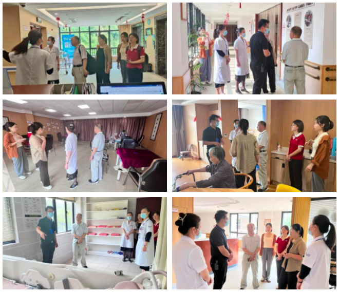 工學(xué)院院領(lǐng)導(dǎo)一行實(shí)地參觀了康久醫(yī)院各科室、住院部、普陀天頤老人之家健康自理區(qū)、小單元多功能集中養(yǎng)護(hù)區(qū)、智能助浴室、棋牌室、老人能力評估室等功能區(qū)域。